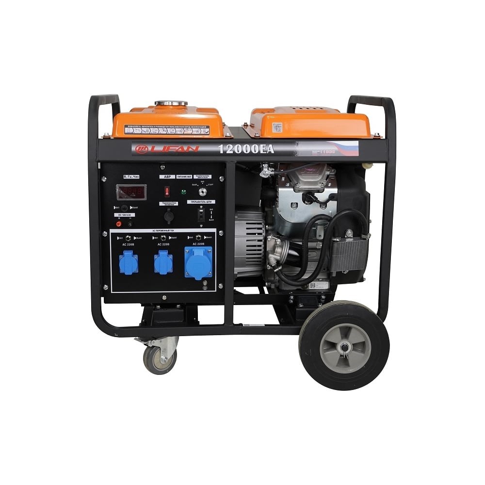 Генератор LIFAN 10 GF-5A 00-00002936 — это однофазный бензиновый генератор, который используется в качестве автономного источника электроэнергии в домашних условиях или на улице. Данная модель имеет электрический и ручной старт и оснащена бензиновым двигателем Lifan 2V78F-2. Особенностью этого генератора является наличие разъема для подключения системы автоматического запуска ATS. Принцип работы системы ATS заключается в том, что в тот момент пока отсутствует внешнее питание сети, генератор позволяет поддерживать напряжение без дополнительной заправки топливом в течение 4.2 ч. Поэтому данная модель генератора идеально подходит для использования в качестве резервного источника питания в загородных домах, коттеджах, на дачах, в гаражных боксах. Как только появляется внешнее питание сети, генератор автоматически отключается и переходит в режим ожидания, и будет готов снова поддерживать требуемое напряжение в случае очередного отключения питания.