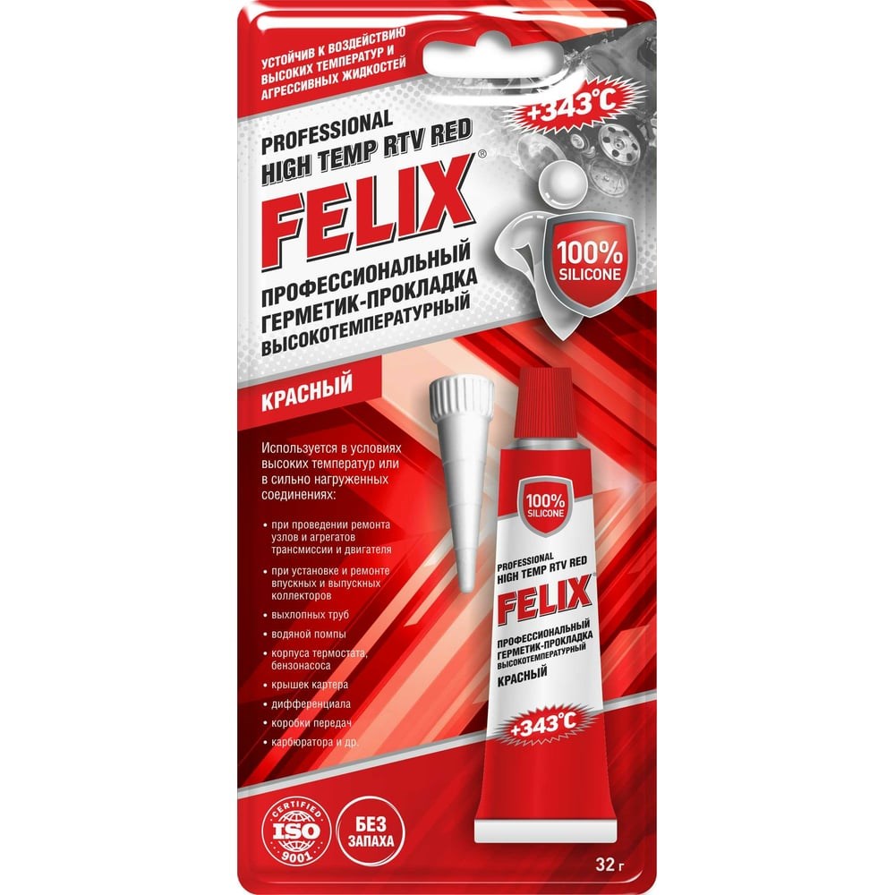 Герметик-прокладка FELIX (красный; 32 г) 411040060 применяется в условиях высоких температур или в сильно нагруженных соединениях, при проведении ремонта узлов и агрегатов трансмиссии и двигателя, при установке и ремонте впускных и выпускных коллекторов, выхлопных труб, водяной помпы, корпуса термостата, бензонасоса, крышек картера, дифференциала, коробки передач, карбюратора. Идеально подходит для устранения течи воды, антифриза и масла в разъемных соединениях (в картере, коробке передач, заднем мосте), зазоров в строительных конструкциях.