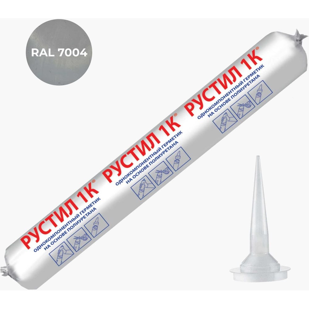Полиуретановый герметик Рустил 1К, 600 мл, светло- серый RAL 7004 и насадка к пистолету для герметика 61458144 предназначен для различных целей герметизации, гидроизоляции при строительстве и ремонте:▪ для деформационных швов в бетонных полах;▪ для примыканий по периметру фасадных элементов, балконных ограждений;▪ в металлических, деревянных и ПВХ конструкциях;▪ для герметизации при сооружении систем вентиляции, кровельных стыков и покрытий;▪ для герметизации сварных швовВозможно использование как для наружных, так и для внутренних работ▪ Продукт отличается усиленной адгезией (прилипанием) к бетону, стали, алюминию, пластику, дереву.▪ В применении – мягкая, легко наносимая паста; наносится с помощью пистолета для герметика.▪ Эластичный, твердость по Шору 25 - как и положено строительному герметику (не 40 или 50, как у жестких герметиков эконом-класса)▪ Честный объем 600 мл▪ Быстрое отверждение при плюсовых температурах▪ После отверждения однородный резиноподобный материал▪ Разработан и изготовлен для применения в условиях климата России.▪ Морозостойкий -подходит для применения в зонах холодного климата, нанесение до -10 градусов, эксплуатация до -60 градусов