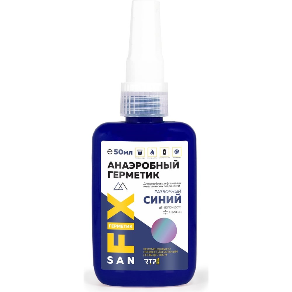 Анаэробный герметик SANFIX предназначен для герметизации металлических резьбовых соединений, в том числе для заполнения имеющихся микронеровностей на поверхности резьбы. После нанесения механическое воздействие распределяется равномерно по всему узлу. Состав обеспечивает герметичность соединения в трубопроводах с водой, газом, маслами и нефтепродуктами. Резьбовое соединение получает дополнительную защиту от коррозии. Анаэробный герметик заменяет собой льняные волокна и ФУМ ленты, применяется для установки и фиксации металлических соединений с резьбовым профилем (не подходит для цинковых, алюминиевый, кадмиевых, серебряных узлов). Состав повышает стойкость к вибрациям, позволяет выдерживать повышенное давление. Анаэробный герметик SANFIX рекомендован для использования в системах водопровода, в том числе с питьевой водой, теплосетях, газопроводах. Материал применяется в производстве насосного оборудования, используется для герметизации сварных швов и стопорения резьбы. После отвердевания герметик становится устойчивым к воздействию химикатов, что делает его востребованным материалом для герметизации узлов в агрессивных средах. Демонтаж выполняется механическим способом, без нагрева.