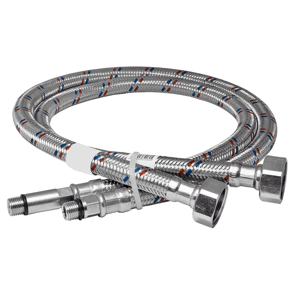 Гибкая подводка для смесителей ELKA1/2" х М10 х 150 см, пара, нержавеющая сталь, гайка обеспечивает присоединение смесителей к трубопроводe холодного и горячего водоснабжения. Гибкая подводка представляет собой резиновый шланг в металлической оплетке из нержавеющей стали и обладает высокими прочностными характеристиками. В процессе монтажа изделие можно сгибать и придавать необходимую форму. Подсоединяется гибкая подводка к точкам водозабора с помощью металлических накидной гайки и штуцера. Гибкая подводка для воды рассчитана на эксплуатацию при рабочем давлении 10 бар и температуре до +100°C.