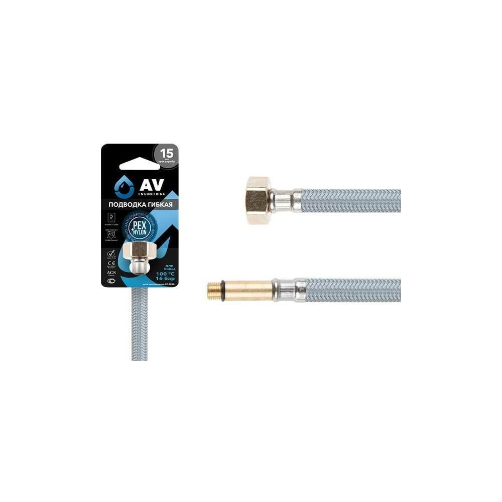 Гибкая подводка для воды AV Engineering nylon Lt иголка М10 длинная - гайка 1/2", 120 см AVE210120 предназначена для подключения отдельного сантехнического оборудования к основной системе водоснабжения и изготавливается только из высококачественных материалов, что обеспечивает высокую эластичность и многолетнюю исправную работу. Накидная гайка изготовлена из никелированной латуни.
