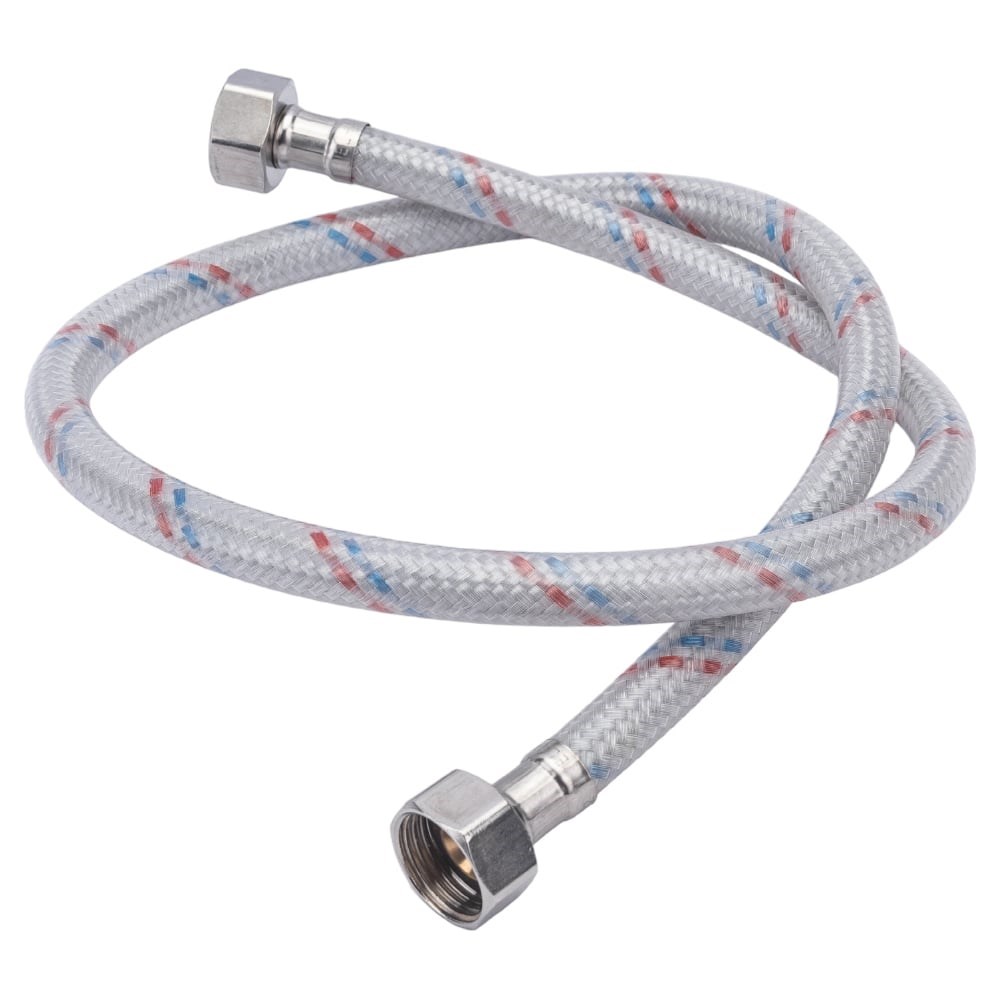 Гибкая подводка для воды ELKA (накидная гайка сталь; оплетка нейлон; покрытие ПВХ) 1/2, вр/вр, 80 см 4627132452673 представляет собой гибкий шланг, внутренняя трубка которого изготовлена из этилен-пропиленового каучука (EPDM), покрытого оплеткой из нейлона с поливинилхлоридным (ПВХ) покрытием. Накидная гайка и обжимные гильзы выполнены из нержавеющей стали, а штуцер и ниппель из латуни.