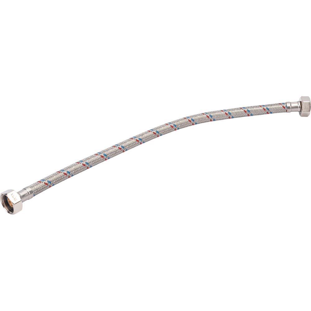 Подводка гибкая для воды с оплеткой из нержавеющей стали ELKA 1/2" х 40 см в/в ИС.100910 обеспечивает присоединение смывных бачков, смесителей, водонагревателей, стиральных и посудомоечных машин к трубопроводам холодного и горячего водоснабжения. Данное изделие отлично заменяет собой металлопластиковые трубы и за счет гибкости позволяет производить подключение к точкам водозабора в труднодоступных местах. Гибкая подводка для воды рассчитана на эксплуатацию при рабочем давлении 10 бар и температуре до +100°C.