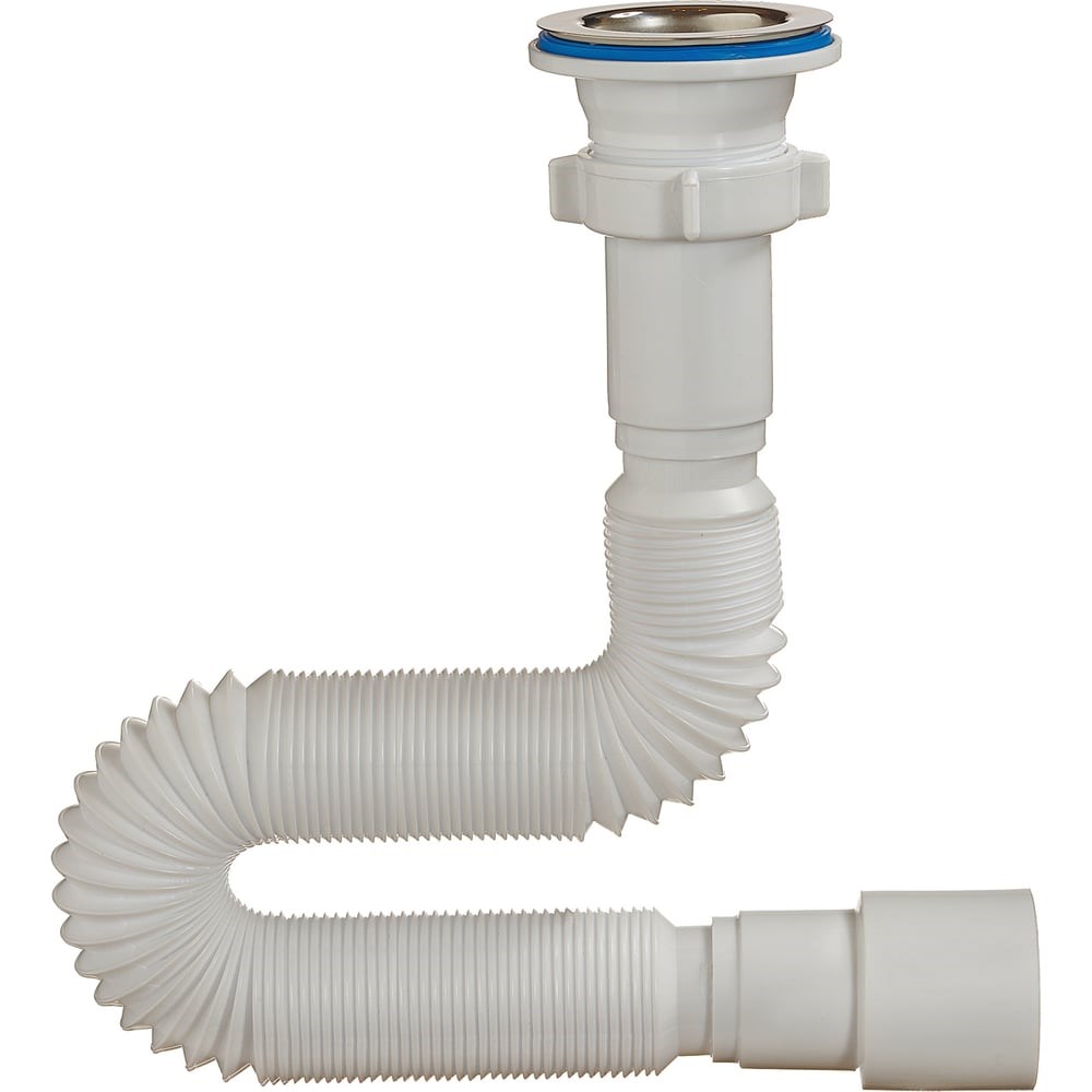 Гибкая труба ORIO с выпуском 1 1/2х40/50, длина 1250 мм А-3013 для раковины и мойки. Длина гибкой трубы 470-1250мм. В комплекте идёт полированная нержавеющая чашка д.70мм. Сифон комплектуется нержавеющим винтом длиной 75мм и нержавеющей гайкой. Гибкая труба имеет два диаметра подключения к канализации 40 и 50мм.
