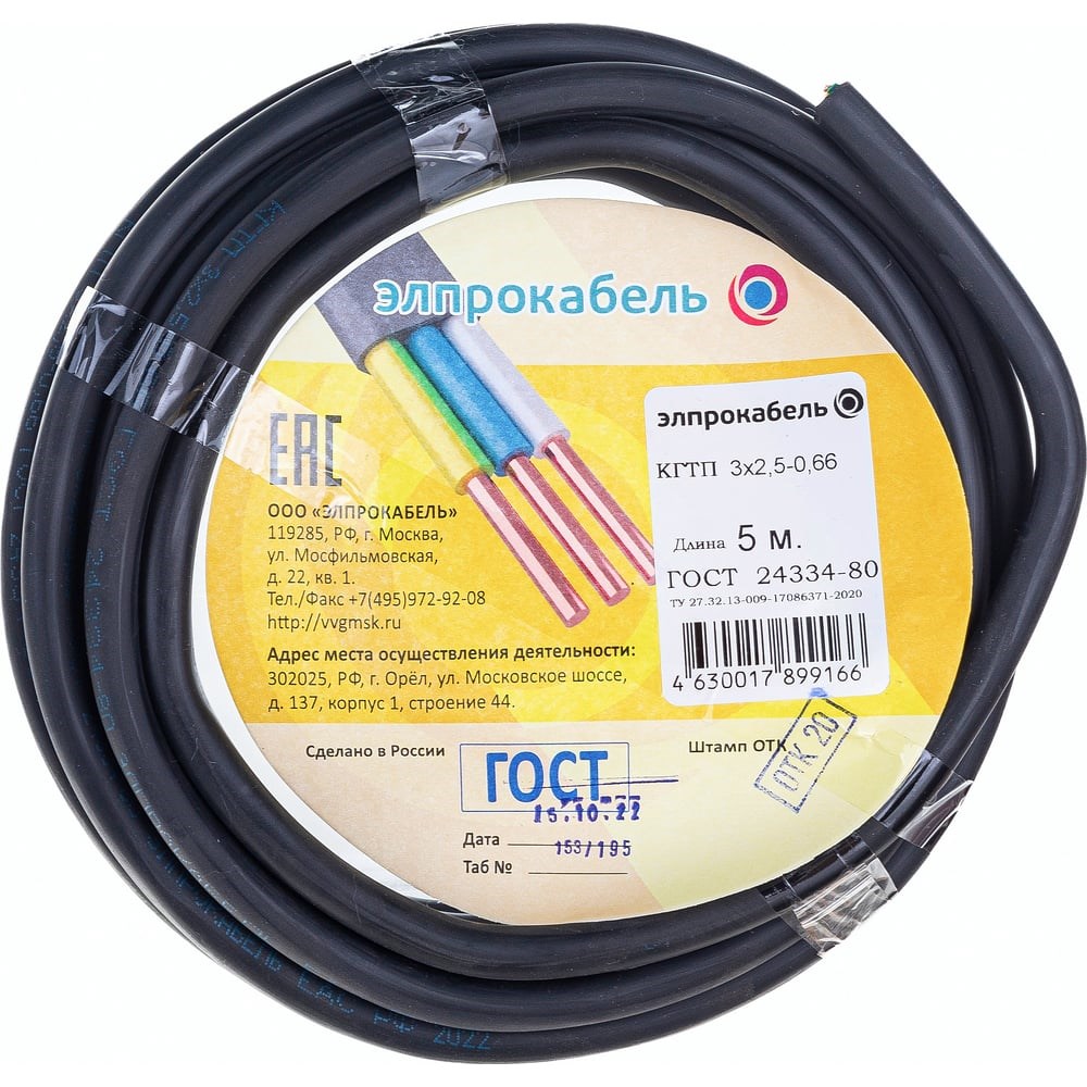 Гибкий круглый кабель ЭлПроКабель КГтп 3x2,5 ГОСТ 5 м 4630017899166 используется для нестационарной прокладки в тяжёлых климатических условиях. С его помощью возможно подключение к сети временных объектов, присоединение объектов к генераторным установкам на открытой местности, оснащение продукции тяжелого машиностроения, речных и морских судов, выполнение электропроводки, в том числе силовой и сигнальной в шахтах и открытых выработках, запитывание подъёмно-транспортного оборудования. Конструктивно представлен токопроводящими медными жилами круглой формы с изоляцией и оболочкой из термоэластопласта. Изолированные жилы скручены с заполнением свободного пространства между жилами.