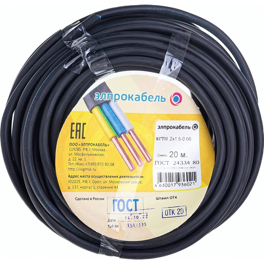 Гибкий круглый кабель ЭлПроКабель КГтп 2x1,5 ГОСТ 20 м 4630017936021 используется для нестационарной прокладки в тяжёлых климатических условиях. С его помощью возможно подключение к сети временных объектов, присоединение объектов к генераторным установкам на открытой местности, оснащение продукции тяжелого машиностроения, речных и морских судов, выполнение электропроводки, в том числе силовой и сигнальной в шахтах и открытых выработках, запитывание подъёмно-транспортного оборудования. Конструктивно представлен токопроводящими медными жилами круглой формы с изоляцией и оболочкой из термоэластопласта. Изолированные жилы скручены с заполнением свободного пространства между жилами.
