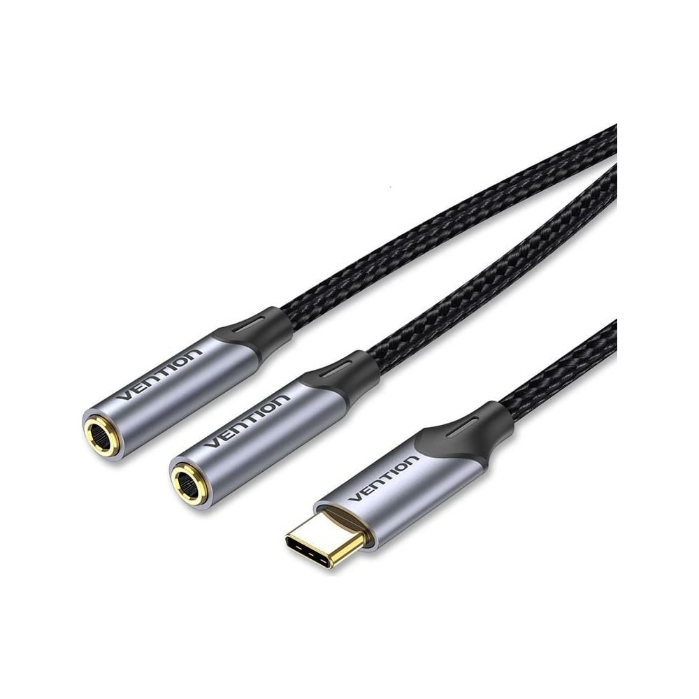 Предназначен для передачи аналоговых стереозвуковых сигналов между аудио, аудио-видео и (или) компьютерными устройствами или их компонентами. Вы можете подключить компьютер (ноутбук), MP3-плеер, или смартфон, к например гарнитуре, активным акустическим системам и прочей мультимедийной технике.Спецификация: Тип разъема: USB Type C M / mini-jack F x 2 Контакты: 24К позолоченные, коррозийно-стойкие Интерфейс: стерео Тип оболчки: Термопластичный эластомер - плетеный хлопок - ПВХ - экранированный(фольга) Материал проводника: эмалированная медь Форма: круглый Длина (м): 0.3 м. Цвет: черный