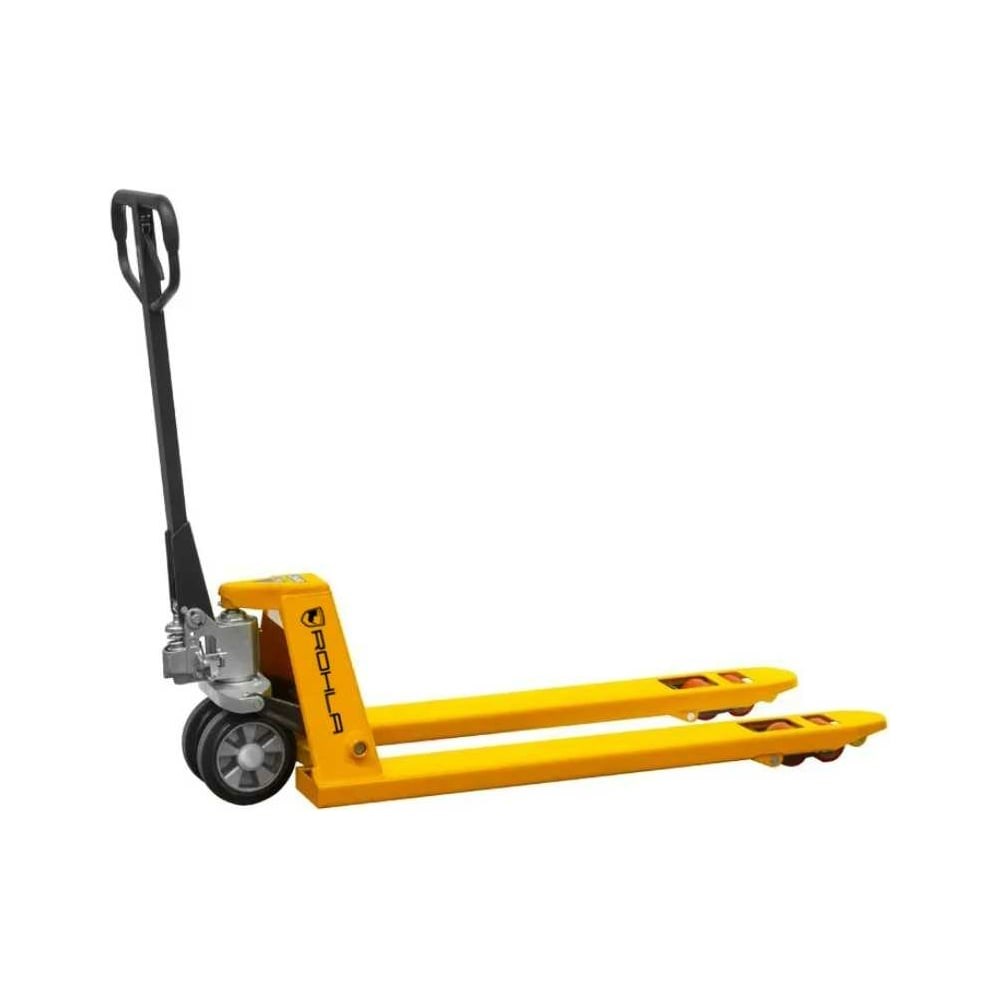 Гидравлическая тележка RohlaRhino Plus г.п. 2,5 т, резиновые колеса RRP2.5RDP имеет вилы с увеличенной толщиной металла, литой разборный гидроузел, обрезиненную рукоятку с усиленным основанием и регулируемые тяги.Дополнительно комплектуется вспомогательными подвилочными роликами и клапаном защиты от перегрузки, что делает работу с тележкой максимально простой и удобной.Ведущие колеса диаметром 180 мм из обрезиненного металла и сдвоенные опорные ролики облегчают передвижение тележки с тяжелыми грузами и повышают плавность хода и легкость поворотов.