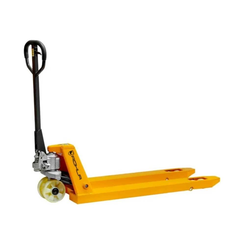 Гидравлическая тележка RohlaRhino г.п. 4 т, нейлоновые колеса RR4NDN благодаря усиленному гидроузлу и увеличенной толщине металла вил, имеет повышенную грузоподъемность 4000 кг. Комплектуется рукояткой с дополнительным усилением. Идеально подходит для использования на любых складах с высокими нагрузками. Ведущие колеса диаметром 180 мм из высокопрочного нейлона и сдвоенные опорные ролики облегчают передвижение при работе с тяжелыми грузами, а дополнительные подкатные ролики обеспечивают лучшее преодоление преград.