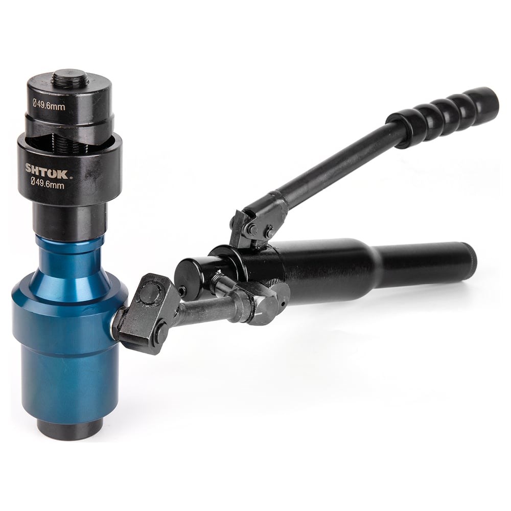 Ручной гидравлический перфоратор для листового металла SHTOK ПГЛ-60 01102 укомплектован пластиковым кейсом для удобства транспортировки и хранения инструмента. Предусмотрено три степени вращения рабочей части, позволяющие делать отверстия в труднодоступных местах. Пресс выполнен из алюминиевого авиационного сплава, облегчающего конструкцию. Гидравлический пресс для вырезания круглых, квадратных и прямоугольных отверстий; Максимальная толщина листовой стали до 3,5 мм; Отверстия не требуют дальнейшей обработки; Производство отверстия занимает около 1-2 минут вне зависимости от размера и конфигурации отверстия; Специальная конфигурация пуансона полностью исключает возможность застревания заготовки в матрице; Комплекты содержат штампы с наиболее часто используемыми размерами; По Вашему запросу специалисты компании SHTOK. изготовят штампы любой формы под используемые Вами материалы; Высокая точность обработки гидравлического узла позволила уменьшить габаритные размеры, уменьшить длину ручек и снизить вес для удобства работы в ограниченном пространстве; Гидравлическая голова из алюминиевого сплава для снижения веса. Уникальная запатентованная конструкция, обеспечивающая 3 степени свободы гидравлической головы для удобства пользования;