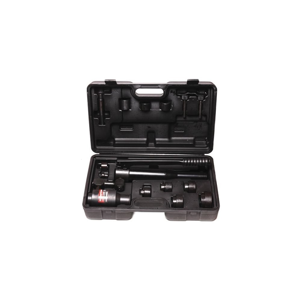 Пробойник гидравлический ручной FORCEKRAFT с карданным присоединением 11 тонн. Он состоит из гидравлического насоса, который создает давление в системе, и пробойника, который является основным рабочим инструментом. Пробойник гидравлический используют для пробивки отверстий различных форм и размеров в мягкой стали, алюминии, стекловолокне и пластике, нержавеющей стали. Насадки подходят доступны для штамповки всех этих материалов. Пробойник позволяет пробивать отверстия под разными углами. Диаметры отверстий: 22, 27,5 34, 43, 49 и 60 мм. Ход штока 22 мм. Толщина материала: сталь нержавейка - 1.6мм, медь/алюминий - 3.2мм. Для удобства хранения и транспортировки поставляется в прочном пластиковом кейсе.