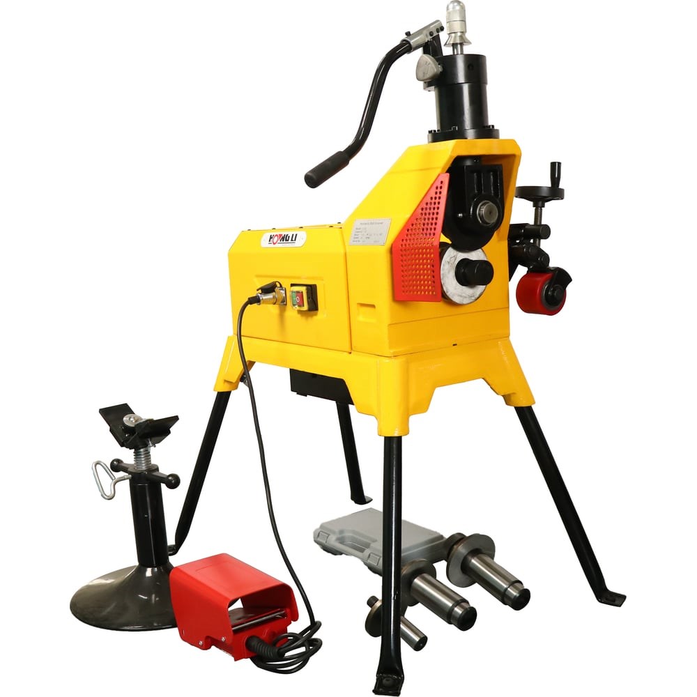Гидравлический желобонакатчик g12d Hongli 502307 оснащается модернизированным гидравлическим насосом, имеет удобную функцию регулировки глубины. Асинхронный двигатель мощностью 1100Вт способен выполнить накатку желобков на трубах 1”- 12” сортамента 10 и 1”- 8” сортамента 40. Для удобства работы желобонакатчик оснащен педалью с функцией экстренной остановки. Конструкция “Отдельный накатывающий ролик” приводного вала позволяет без особых усилий его заменить. Модель G12D поставляется с легко регулируемыми опорными ножками. Асинхронный двигатель обеспечивает устойчивую и бесшумную работу. прижимной обеспечивает стабильность положения трубы при накатке. Желобонакатчик укомплектован всем необходимым для работы: комплектами приводных валов и накаточных роликов для труб в диапазонах: 1", 1 ¼ - 1 ½", 2-6", 8-12", лентой для измерения диаметра, ножками, опорой для труб и набором инструментов.
