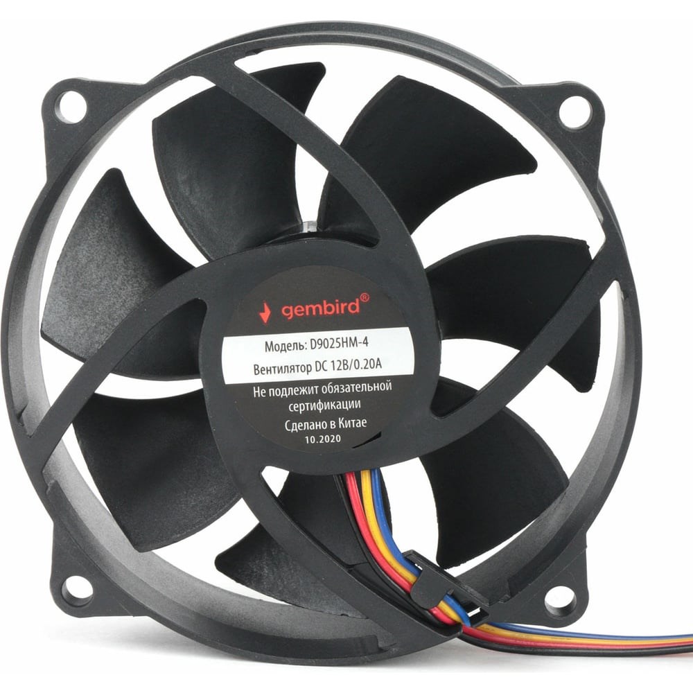 Дополнительные характеристики гидродинамического вентилятора Gembird 90x90x25, 4 pin, провод 30 см, D9025HM-4: Конструкция: гидродинамический подшипник. Воздушный поток: 38.5 CFM (Cubic Feet per Minute - Кубический фут в минуту). Номинальный ток: 0.20 А. Датчик оборотов: есть. Управление количеством оборотов: есть.