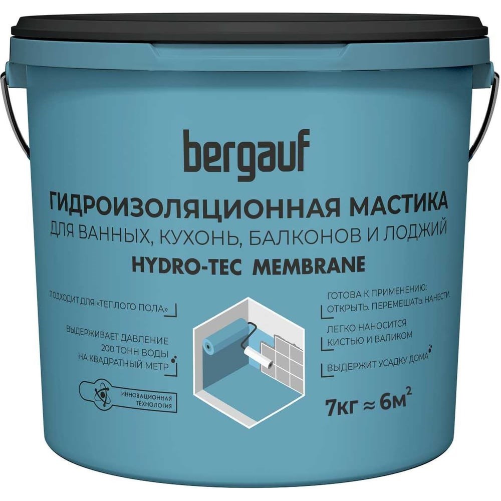 Гидроизоляционная мастика под плиточной облицовки Bergauf Hydro-tec membrane 7 кг 69982 - представляет собой пасту голубого цвета с хорошей адгезией к бетону, цементной штукатурке, стяжке, кирпичной кладке и другим основаниям. Применяется внутри помещений для обработки стен и полов, с дальнейшей укладкой на нее керамической плитки, керамогранита, мозаики или натурального камня. В составе отсутствуют растворители, благодаря чему мастика безопасна для здоровья человека. Важные характеристики: Бесшовная, эластичная и готовая к применению Выдерживает усадку дома, не деформируясь и перекрывая трещины до 2 мм, возникающие при усадке. Подходит для теплого пола Подходит для инсталляций и гипсокартона Легкое нанесение даже в стыках и на углах Защищает от возникновения плесени и грибка Высокая водонепроницаемость — W20 , что гарантирует защиту от протечек. Особенности применения Перед началом работы мастику Hydro-TEC Membrane следует перемешать в заводской таре. Материал наносят на основание в два слоя кистью, валиком или шпателем в перекрестных направлениях . Время высыхания первого слоя составляет 2 часа, второго слоя не более 6 часов Стыки пола и потолка следует дополнительно изолировать гидроизоляционной лентой После нанесения 2 слоя к дальнейшим работам можно приступить через 24 часа