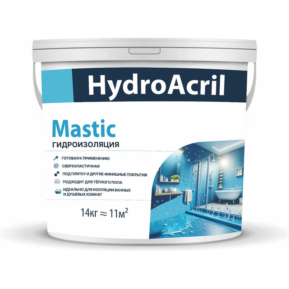 Акриловая гидроизоляция для внутренних и наружных работ – это готовый к применению продукт на основе акриловой дисперсии, предназначена для защиты от воды бетонных и железобетонных конструкций, бань, санитарных узлов, душевых и ванных комнат, кухонь, не подвергающихся постоянному контакту воды. Акриловая гидроизоляция используется для создания эластичного гидроизоляционного слоя по бетонным и цементно-песчаным основаниям, штукатурке, кирпичной кладке, древесине, гипсокартону, также применяется в местах примыкания вентиляционных труб и дымоходов, при заделке трещин и швов, при монтаже полов с подогревом. Не использовать при постоянной нагрузке воды, в емкостях с питьевой водой, колодцах. Не является финишным покрытием. Является промежуточным слоем между защищаемой конструкцией и последующим покрытием. Применяется как гидроизоляция для ванной, гидроизоляция для кухни, обмазочная гидроизоляция, эластичная гидроизоляция, гидроизоляция под плитку, жидкая гидроизоляция, гидроизоляция для пола, гидроизоляция для тёплого пола, гидроизоляция душевой, гидроизоляция санузла, гидроизоляция для балкона, гидроизоляционная мембрана, гидроизоляция под стяжку, гидроизоляция поверхности, вертикальная гидроизоляция, гидроизоляция помещений. Условия проведения работ Работы рекомендуется выполнять при температуре не ниже +5 °С и не выше +30 °С, не рекомендуется выполнять работы под прямыми солнечными лучами, на сквозняке. Необходимо нанести не менее 2 слоев с промежуточной сушкой 3 часа.