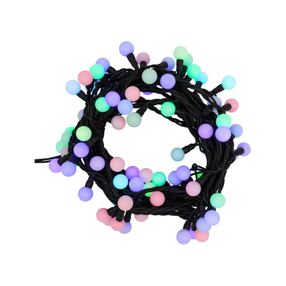 Гирлянда Neon-Night мультишарики d17,5мм, 10м, черный каучук, 80led, цвет rgb 303-679 представляет собой электрический шнур, имеющий длину 10 или 20 м, на котором располагаются сверхъяркие светодиодные лампы, изготовленные в виде шариков с диаметром 1,3-4,5 см. Гирлянда «LED-шарики» подходит для украшения витрин магазинов, помещений, больших интерьерных и уличных елок, превращая их в настоящие произведения искусства. Благодаря хорошей влагозащищенности, гирлянду можно использовать как в помещении, так и на улице.
