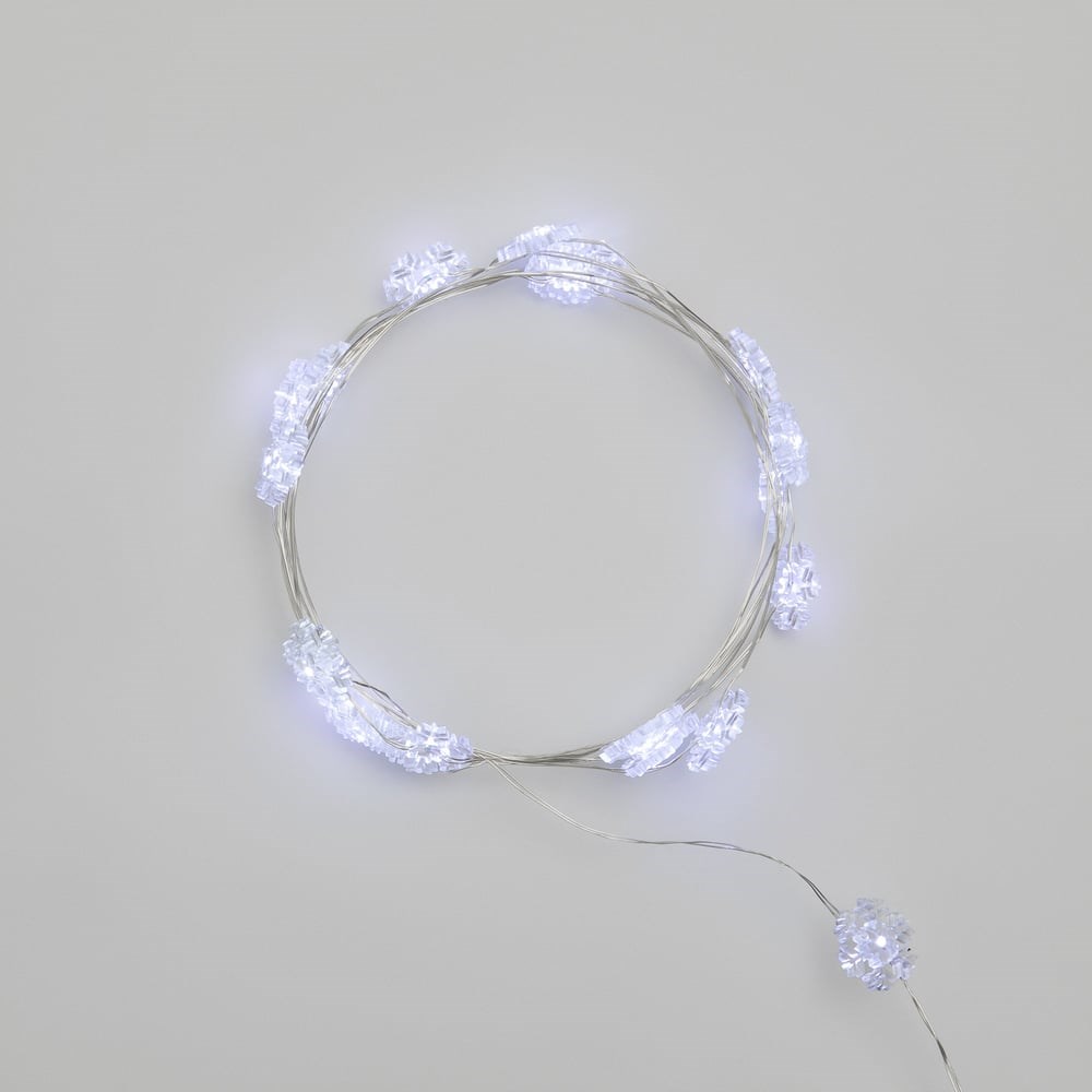 Гирлянда «Снежинки» длиной 2 метра — эффектное зимнее украшение, которое подарит ощущение сказки и приближающихся праздников. 20 ярких белых светодиодов находятся внутри пластиковых насадок, искусно выполненных в виде снежинок. Изделие не требует подключения к электросети: питается от двух источников CR2032, что говорит об абсолютной безопасности в использовании. Одного комплекта батареек хватает на 48 часов непрерывного свечения. Серебристый кабель обладает способностью сохранять форму при изгибе — гирлянда идеально подходит для декора сложных конструкций.