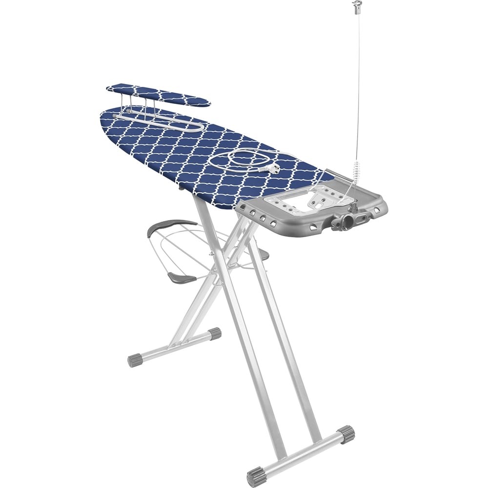 Широкая гладильная доска предназначена для глажки белья. Модель оснащена электросоединителем и эргономичной подставкой под утюг.Подходит для правшей и левшей. Доску можно плавно регулировать по высоте. Регулируемые опоры служат для устойчивости доски на неровном полу.