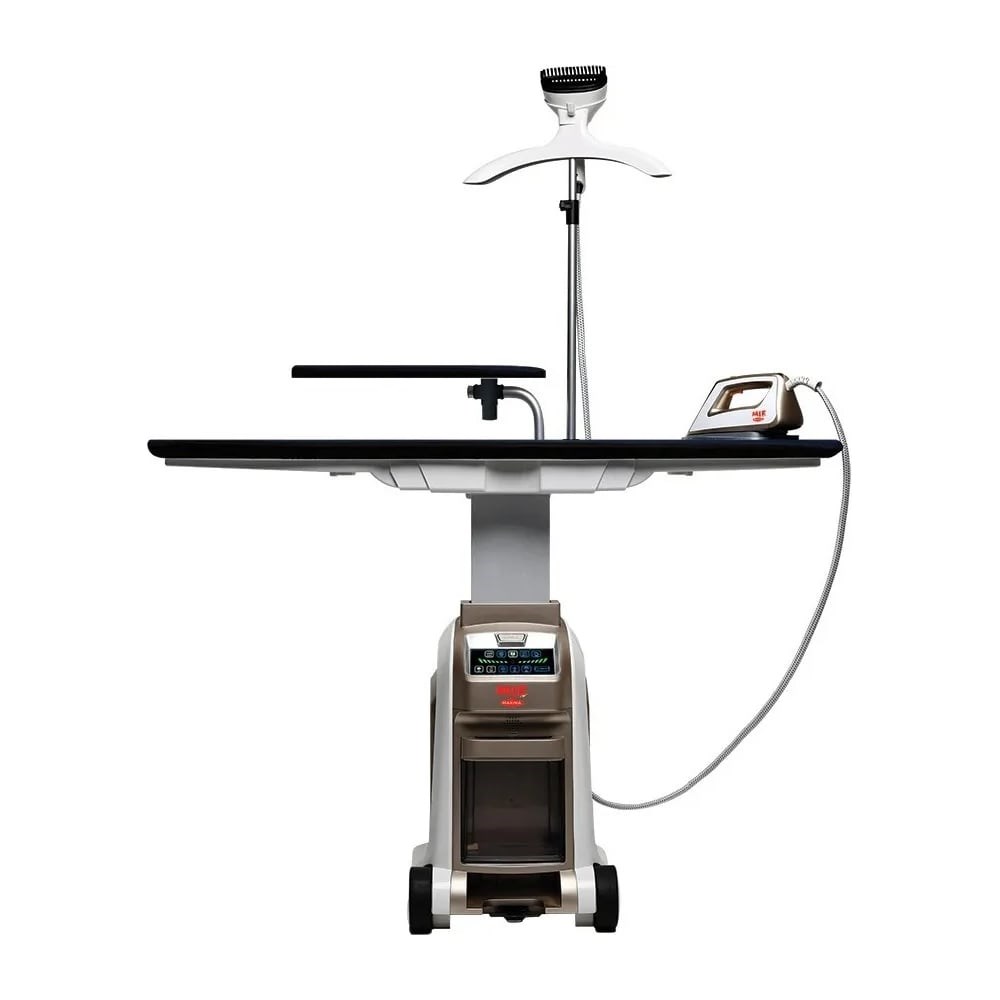 Гладильная система MIE Maxima Gold 380759 применяется для комплексной глажки одежды. Поставляется в комплекте с пароочистителем, благодаря чему система эффективно дезинфицирует белье. Оснащена функцией автоматического отключения, что обеспечивает безопасное пользование. Имеет индикаторы готовности пара и уровня воды в бойлере, что позволяет ускорить процесс глажки. Дополнительные характеристики: Напряжение: 220-240 В. Общая мощность: 2200 Вт. Мощность утюжка отпаривателя: 600 Вт. Подогрев доски: нет. Мощность вентилятора: 25 Вт. Давление пара: 6 бар. Паровой удар: 7 бар. Поддув: есть. Отвод пара: есть. Объем бойлера: 1.7 л. Материал подошвы утюжка: нержавеющая сталь. Материал бойлера: нержавеющая сталь.. Размер подошвы утюга: 20,5х11 см. Размер подошвы утюжка: 12,5х5,5 см. Температурный режим: 140-185° C. Система Антикапля: есть. Длина парового шланга утюга: 170 см. Длина шланга парового утюжка: 160 см. Контрольный индикатор: есть. Дозалив: есть. Отверстие для промывки нагревательного элемента: нет. Функция очистки: есть. Антикальционный фильтр: есть. Вертикальное отпаривание: есть. Управление: электронный LCD дисплей. Регулировка высота: Плавная регулировка с помощью газлифтов. Тип вентилятора: реверсивный. Колеса: есть.
