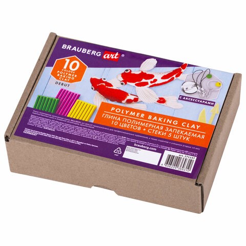Глина полимерная запекаемая, НАБОР 10 цветов по 20 г, с аксессуарами, в гофрокоробе, BRAUBERG, 271157