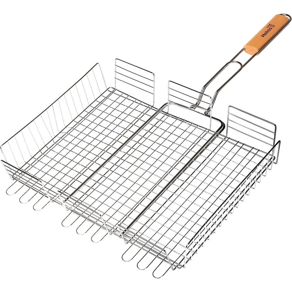 Глубокая решетка для барбекю Helios HS-RB AW204 Лайт 65x40x30x7 см 176204 предназначена для приготовления продуктов на углях. Подходит для барбекю, мангалов, жаровень. Удобная деревянная ручка не нагревается при использовании и не скользит в руках. Благодаря тому, что решетка переворачивает все содержимое одним движением, значительно экономится время при готовке.