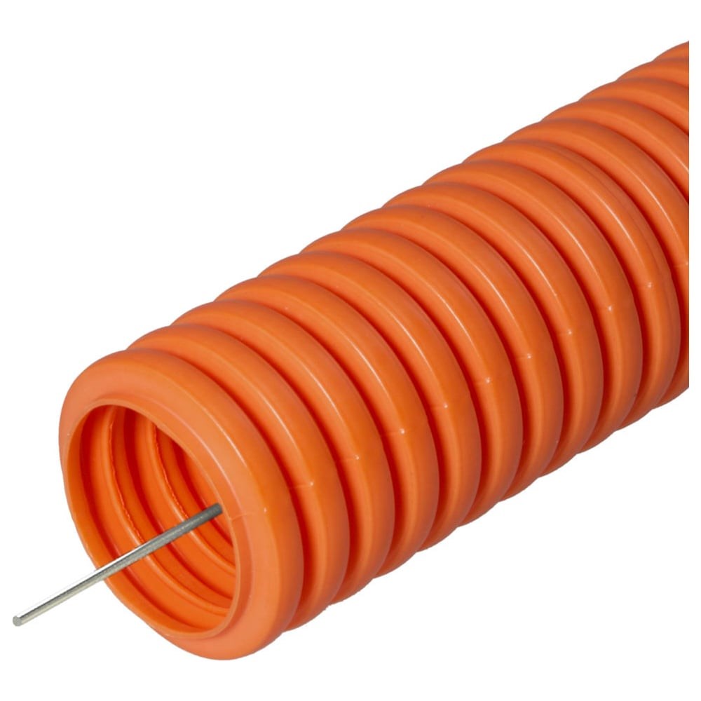 Гофрированная легкая труба ПВХ Промрукав 350 Н оранжевая с зондом д20мм 100м PR01.0131 подходит для защиты изолированных проводов и кабелей от механических повреждений и агрессивного воздействия окружающей среды. Материал изготовления - ПВХ пластикат (соответствует требованиям пожарной безопасности по ГОСТ, категория горения ПВ-0) препятствует возгоранию изделия. Труба имеет высокую коррозионную и химическую стойкость. Труба является диэлектриком, что гарантирует защиту от поражения электрическим током. Выдерживает статическую нагрузку до 35 кг. Подходит для использования в помещениях или на открытом воздухе, без прямого воздействия солнечных лучей.
