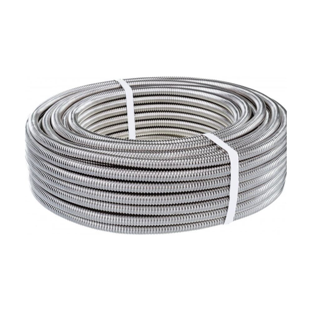 Гибкая гофрированная труба из нержавеющей 304 марки стали. Применяется для монтажа, систем отопления, горячего и холодного водоснабжения и пожаротушения, водяных теплых полов, обвязки котлов насосных групп и систем гибких подводок различного назначения. Обладает высокой гибкостью и многократным циклом изгибов в одном месте. Гофрированная труба из нержавеющей стали широко применяется при устройстве систем: Отопление – повышенная тепловая выносливость изделий позволяет их активно применять при монтаже систем отопления и высоких температур теплоносителя; Газоснабжение – гибкая труба в защитной полиэтиленовой оболочке считается оптимальным вариантом для подключения котлов и газовых плит к системе газопроводов низкого давления; Теплые полы – купить гофрированную трубу из нержавеющей стали для монтажа теплого пола является лучшим решением, так как обеспечивается непрерывная подача теплоносителя по петлям; Водоснабжение – за счет компенсирования гофрой линейного расширения при нагреве позволяет исключить перегиб линий подачи горячей воды; Защита электросетей – гибкая нержавеющая гофрированная труба применяется в качестве металлического рукава защиты кабелей и проводов при устройстве электрических сетей и прокладке кабелей различного назначения.