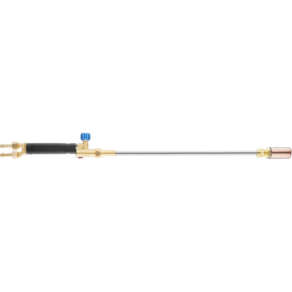 Газокислородная горелка для наплавки и нагрева металла длиной 800 мм используется для предварительного нагрева изделий перед сваркой, наплавления материала с высокой износостойкостью на рабочую поверхность детали для увеличения ее долговечности. Горелка укомплектована латунным наконечником с медным сетчатым мундштуком № 8П. Точная регулировка мощности пламени производится вентилями. В руководстве по эксплуатации указаны ориентировочные данные. На горелке установлена ручка из высокотемпературного штампованного пластика, выдерживающая температуру до 200°С, благодаря чему можно работать в тонких рукавицах.