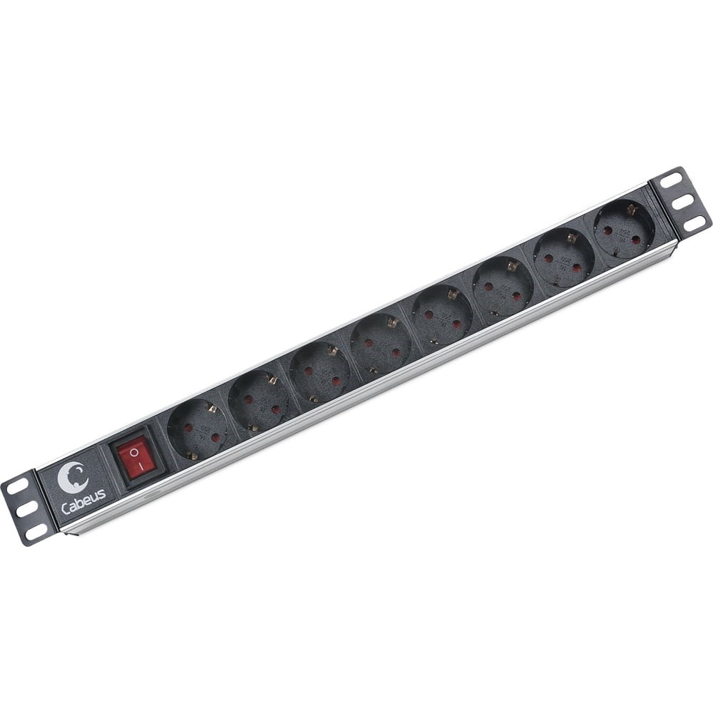 Блок электрических розеток предназначен для распределения электропитания между активным оборудованием в телекоммуникационных шкафах и стойках с номинальным напряжением 220В и суммарным током нагрузки не более 10А. Блок выполнен в виде корпуса с креплением 19” и высотой 1U. Состоит из электрических розеток, соединённых шинами питания, изготовленных из латуни марки Л63Т сечением 6мм² каждая. Блок розеток не имеет шнура питания в комплекте. Корпус изготовлен из алюминия. Использование металлического корпуса обеспечивает дополнительную защиту от повреждения при случайных ударах, более высокую термостойкость и дополнительную экранировку от электрических помех. Основные параметры Тип установки: шкаф/стойка 19”, горизонтально Количество розеток: 8 Длина шнура: нет Габаритные размеры (ШхГхВ): 490х45х45мм Высота: 1U Входной разъем (IN): 1х IEC 60320 C14 Выходная розетка (OUT): 8х IEC 60906-2 (DIN 49440/Schuko) Корпус: алюминий Наличие выключателя