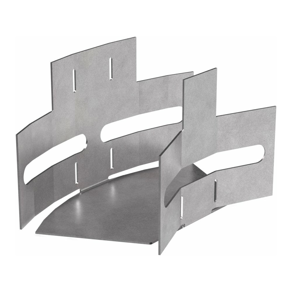 Аксессуары изготовленные из стали с защитным покрытием по методу Сендзимира – это изделия, на которых защитное цинковое покрытие было нанесено на листовую сталь перед изготовлением. Толщина защитного покрытия варьируется от 10 до 22мкм. Климатическое исполнение изделий УХЛ2, что предусматривают эксплуатацию в помещении и под навесом, при температуре эксплуатации от -80 до +150°С. Обеспечивает плавный переход горизонтальной кабеленесущей линии между лотками металлическими в диапазоне от 0 до 45 градусов.