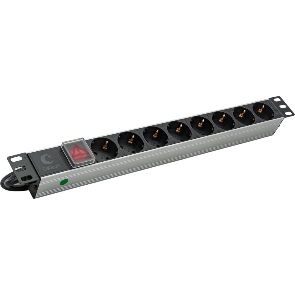 Блок электрических розеток предназначен для распределения электропитания между активным оборудованием в телекоммуникационных шкафах и стойках с номинальным напряжением 220В и суммарным током нагрузки не более 10А. Блок выполнен в виде корпуса с креплением 19” и высотой 1U. Состоит из электрических розеток, соединённых шинами питания, изготовленных из латуни марки Л63Т сечением 6мм² каждая. Блок розеток имеет шнур питания с вилкой IEC 60320 C14 длиной 2м. Корпус изготовлен из алюминия. Использование металлического корпуса обеспечивает дополнительную защиту от повреждения при случайных ударах, более высокую термостойкость и дополнительную экранировку от электрических помех. Основные параметры Тип установки: шкаф/стойка 19”, горизонтально Количество розеток: 8 Длина шнура: 2м Габаритные размеры (ШхГхВ): 490х45х45мм Высота: 1U Входной разъем (IN): 1х IEC 60320 C14 Выходная розетка (OUT): 8х IEC 60906-2 (DIN 49440/Schuko) Корпус: алюминий Наличие выключателя