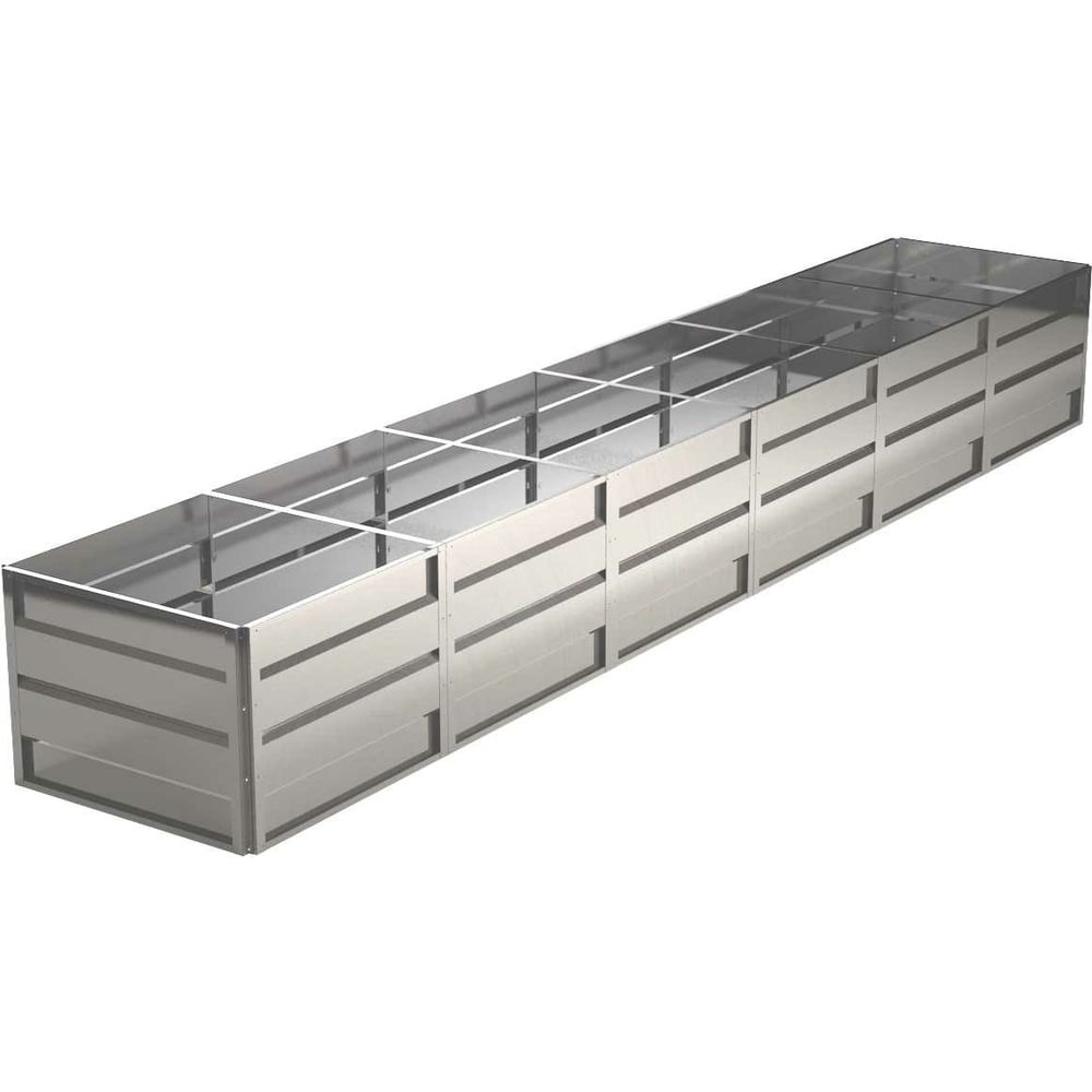 Готовая грядка Delta-Park GW 1х6 м, серебристая 30011_GW16Zn высотой 72 см позволяет выращивать урожай, не сгибаясь. В тёплых грядках урожай превосходит все ожидания. Используя бортики для грядок GW высотой 72 см, легко собрать грядку любого размера. Стяжка предохраняет от развала грядку от земли (входит в комплект). Отсутствие колышков позволяет устанавливать их на любой твёрдой поверхности (бетон, дерево, асфальт). Широкие грядки шириной 100 см могут использоваться только с двух сторон и не подойдут для установки к дому или забору.