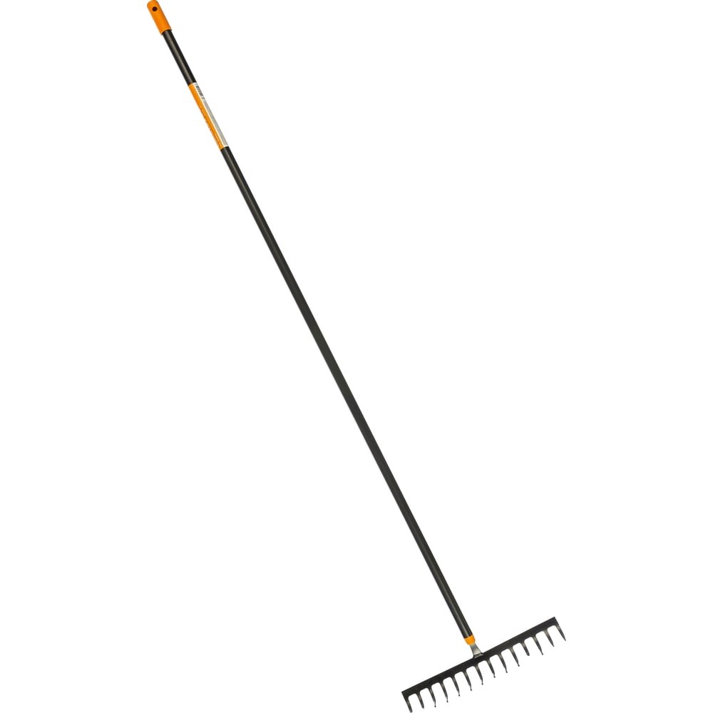 Грабли Fiskars SolidTM 1016036 незаменимый садовый инструмент. Используется для рыхления почвы и уборки опавшей листвы. Рабочая часть изготовлена из закаленной углеродистой стали, что обеспечивает особую прочность и высокую износостойкость инструмента. Длинный алюминиевый черенок имеет малый вес. Это позволяет минимизировать прилагаемое усилие при работе и снизить нагрузку на спину пользователя.