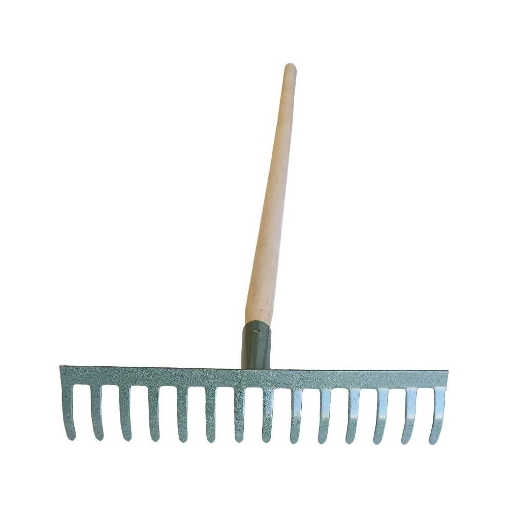 Грабли ООО Агростройлидер 14-ти зубые прямые с черенком в сборе, L=1,5 м САД-08.12.11 используются для сбора листьев, скошенной травы, а также для рыхления и разравнивания почвы. Металлические плоские зубья расположены поперек рабочей планки, за счет чего увеличивается площадь их воздействия при работе. Это классическая модель, которой можно делать в саду практически всё. Порошковое покрытие надежно защищает металлическую часть инструмента от коррозии.