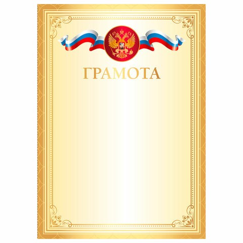 Изготовлено из импортного мелованного картона. Плотность картона в 200 г/м2. позволяет печатать текст на принтере (кроме струйного). Грамота оформлена в соответствии со всеми стандартами, что придает им официальный статус. Имеется изображение российской символики. Формат А4 позволяет вставить грамоту в рамку и расположить на удобном месте.