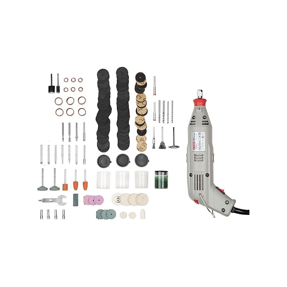 Гравер ЗУБР ЗГ-130ЭК + 176 предметов H176 предназначен для выполнения широкого спектра задач: резки, шлифования, полировки, гравирования - все зависит от установленной оснастки. Модель может одинаково продуктивно работать по металлу, стеклу, керамике, дереву и пластику. Блокировка шпинделя позволяет быстро и удобно менять оснастку. Комплект поставляется в удобном транспортировочном боксе.