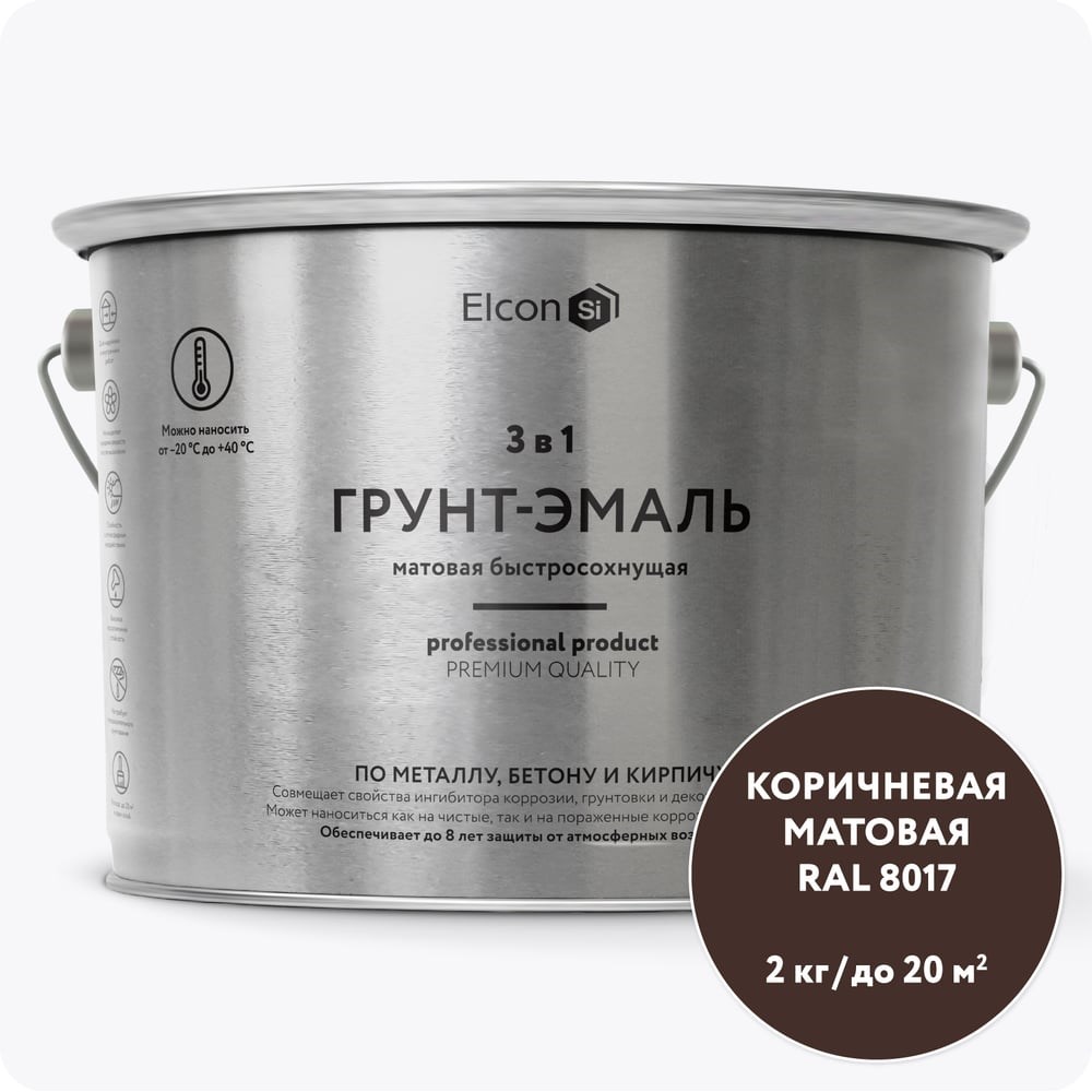 Антикоррозионная краска 3 в 1 по металлу Elcon, (краска по ржавчине) коричневая 2 кг 00-00462663 предназначена для нанесения как на чистые, так и на пораженные коррозией металлические поверхности с целью создания надежной антикоррозионной защиты металлоконструкций, оборудования, металлических изделий. Грунт-эмаль 3 в 1 Elcon сочетает в себе функциональные свойства преобразователя ржавчины, антикоррозионного грунта и декоративной эмали.Указания к применению:• Очистить поверхность от загрязнений, обезжирить растворителем Elcon R или ксилолом (недопустимо использовать уайт-спирит, сольвент, бензин).• Перед применением тщательно перемешать, при необходимости разбавить растворителем Elcon R до 10% от общей массы.• Допускается нанесение без предварительного грунтования.• Эмаль наносится на сухую поверхность в 2–3 слоя с промежуточной сушкой 1-2 часа при температуре +20°C.• Время окончательной сушки при температуре (20±2) °С — 24 часа.• Срок окончательной полимеризации покрытия при температуре (20±2) °С — 72 часа.Области применения:• Металлические изделия • Садовая мебель • Ворота • Заборы • Двери • Теплицы • Светильники • Скамьи • Оборудование