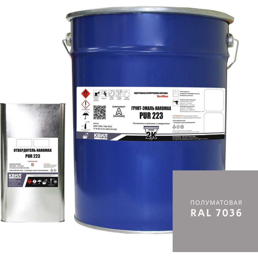 Комплект HardMax толстослойная двухкомпонентная полиуретановая грунт-эмаль с отвердителем на основе алифатического изоцианата рекомендуется для окраски сельскохозяйственных и строительных машин, стальных конструкциях, металлических элементов, деревянных изделий, детских городков и т.п.СвойстваПокрытие сочетает в себе высокие декоративные и эксплуатационные свойства, а также продолжительный срок службы. Обладает исключительной износостойкостью и устойчивостью к механическим нагрузкам, к воздействию пресной и морской воды, бензину, дизельному топливу, индустриальным маслам. Легко наносится на большие поверхности, обладает превосходным розливом.Грунт-эмаль готова к применению через 15 минут.Необходимо строго соблюдать пропорцию компонентов и тщательно их перемешивать,т.к. нарушенное соотношение компонентов приводит к неравномерному отверждению и ухудшению качества покрытия.При необходимости до рабочей вязкости грунт-эмаль довестиразбавителем ПУР 230, которыйприобретается отдельно.Запрещеноиспользовать универсальные разбавители, т.к. они могут содержать спирты, которые будут реагировать с отвердителем.Разбавитель для данного материала: Разбавитель ПУР 230 - 4690417091850