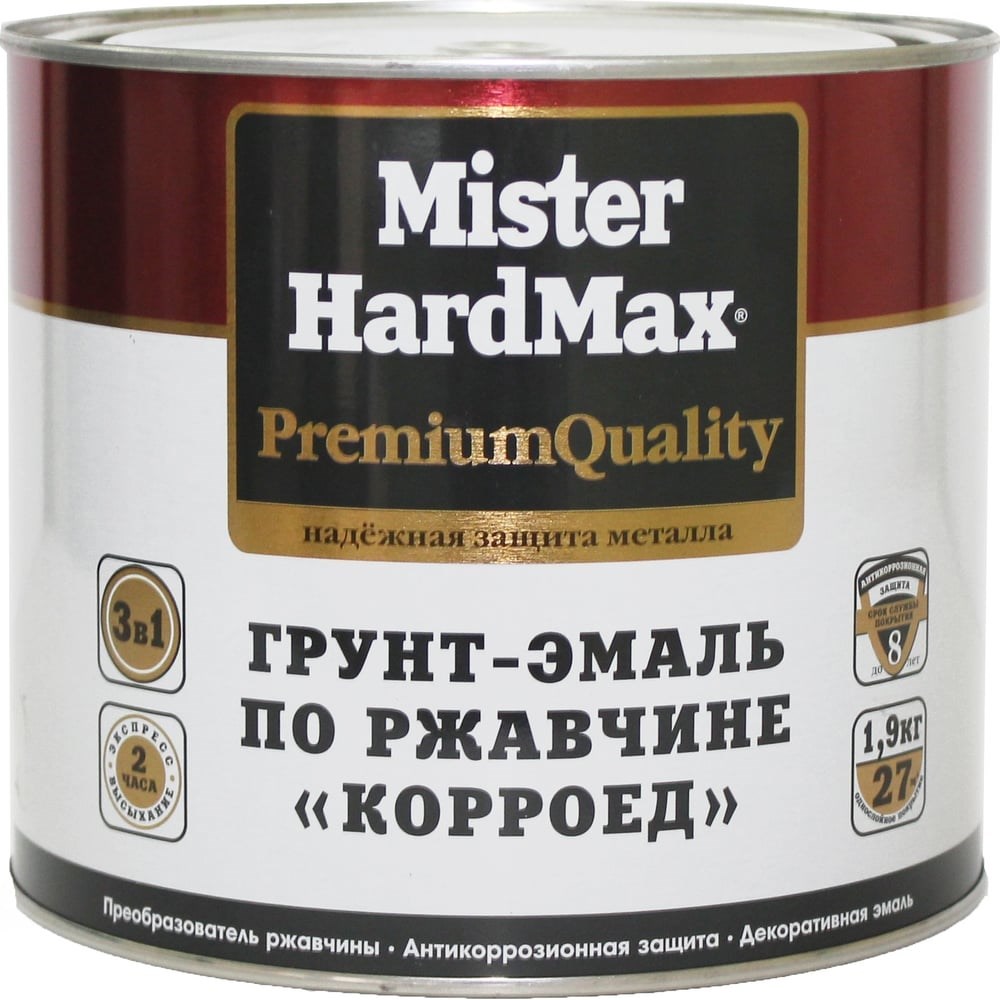 Грунт-эмаль по ржавчине HardMax Корроед RAL 8017 шоколадный, банка 1.9 кг, 1 шт. 4690417071869 служит для одновременного преобразования ржавчины, антикоррозионного грунтования, финишной окраски чистых и прокорродировавших металлических поверхностей (с толщиной прочно связанной с металлом ржавчины до 100 мкм). Используют для обработки строительных конструкций, промышленного оборудования, складских помещений, ангаров, гаражей, труб, ворот, дверей, навесов, кованной мебели, декоративных ограждений, решеток. Состав образует прочную, ровную, полуматовую поверхность с высокой атмосферо- и противокоррозионной стойкостью. Покрытие устойчиво к действию технических масел, нефти, дизельного топлива, этилового спирта. Выдерживает кратковременное воздействия пресной и морской воды, слабых кислот и бензина. Применение продукта упрощает подготовку поверхности перед окрашиванием и удешевляет технологию создания антикоррозионного покрытия, т.к. не требует предварительного удаления прочно связанной ржавчины и грунтования. Система покрытия, состоящая из трех слоев грунт-эмали, в условиях умеренно-холодного климата сохраняет защитные свойства в течение 8 лет.