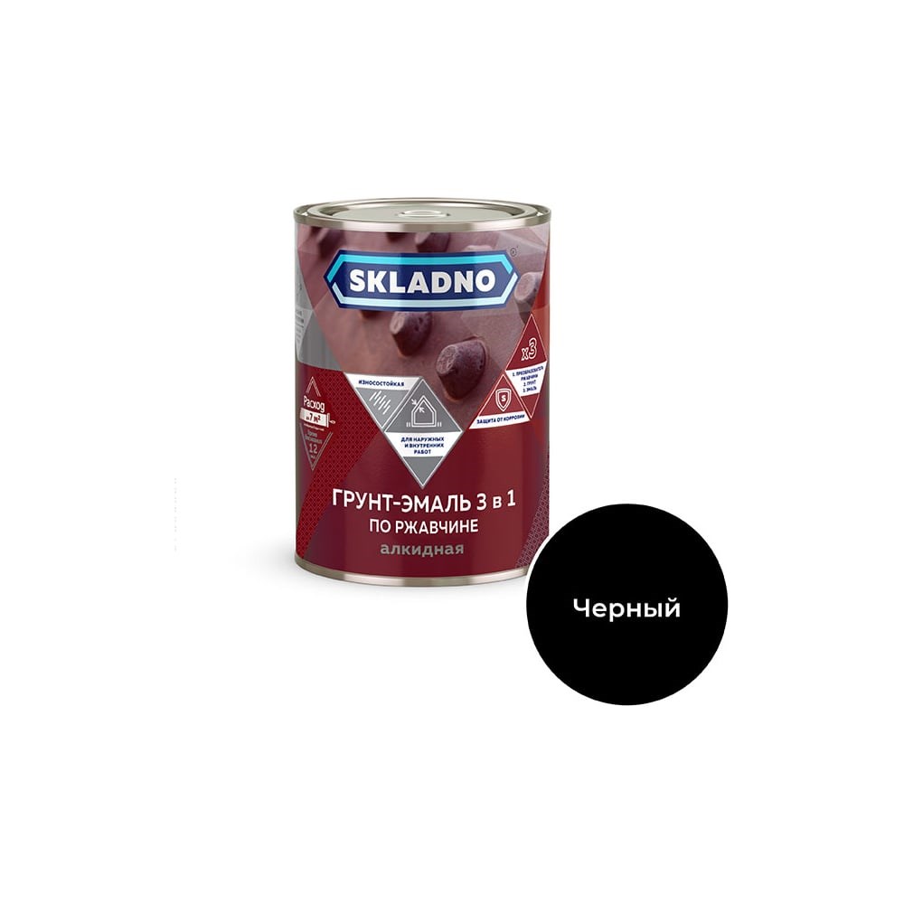 Предназначена для окрашивания чистых и ржавых металлических поверхностей. Состав: модифицированная алкидная смола, антикоррозионные наполнители, пигменты, растворитель, сиккатив, функциональные добавки; Вес: 0,8 кг; Цвет: черный. Черный Уникальный продукт сочетающий в себе свойства 3-х компонентов: преобразователя ржавчины, антикоррозионного грунта и декоративной эмали. Преимущества: - Возможно нанесение прямо на ржавую поверхность; - Прекращает развитие ржавчины на металле; - Экономит время - легкая в нанесении.