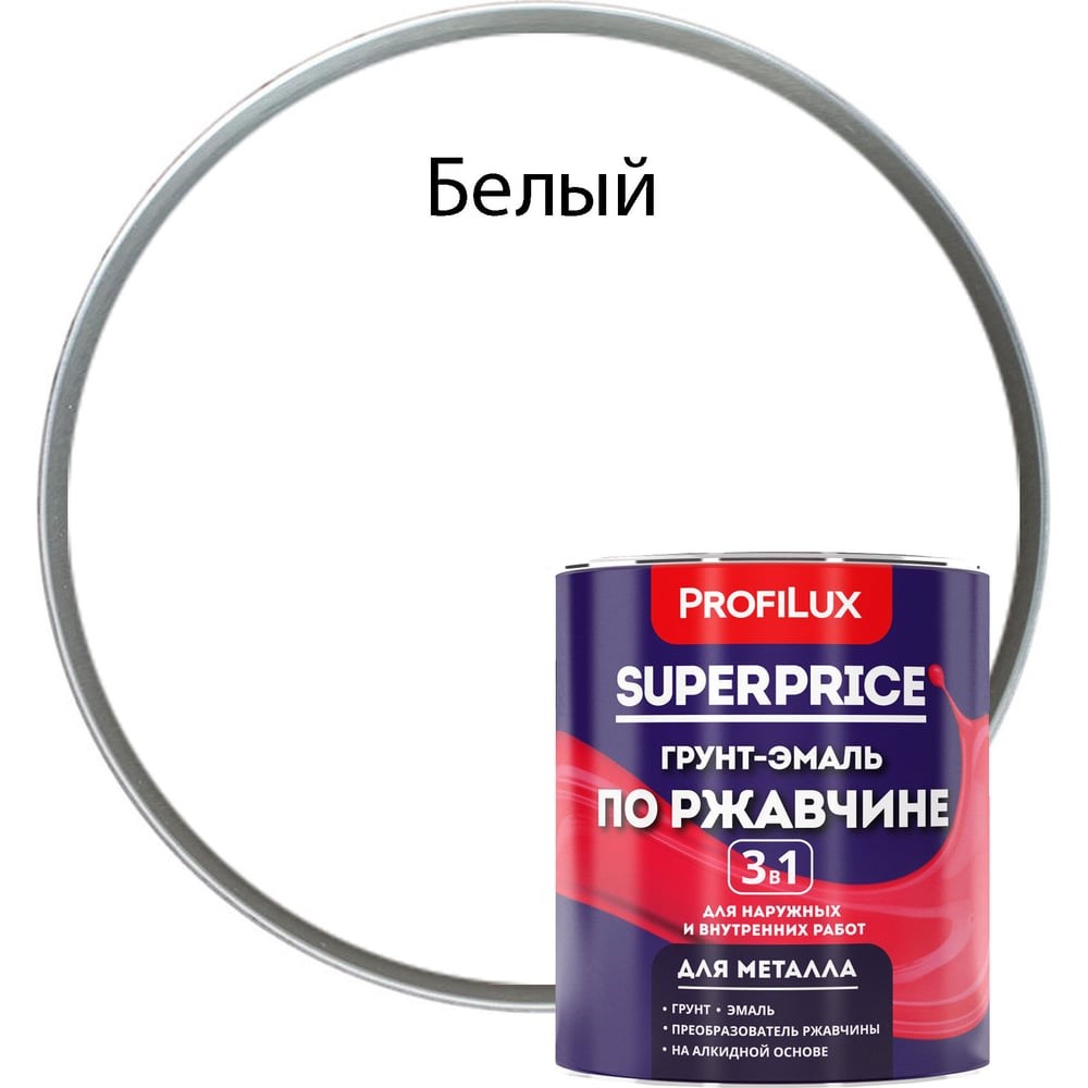 Грунт-эмаль по ржавчине 3 в 1 Profilux superprice белая, 0.9 кг МП00-000533 предназначается для преобразования ржавчины, грунтования и окраски чистых и прокорродировавших металлических поверхностей с толщиной прочно связанной ржавчины до 0,1 мм. Эмаль можно использовать в качестве грунтовки в многослойных системах покрытий. Для внутренних и наружных работ. Имеет прочное сцепление с окрашиваемой поверхностью, легко наносится. Обладает хорошими декоративными свойствами. Устойчива к действию воды, атмосферных осадков и растворов моющих средств.