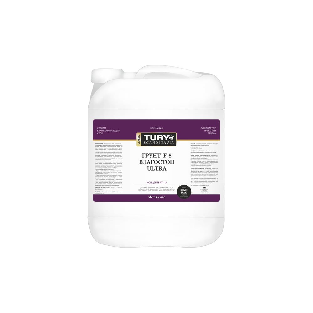 Грунт TURY F-5 Влагостоп (концентрат 1:5; 10 кг) 20014248 предназначена для грунтования и создания влагоизолирующего слоя на поверхности бетона, штукатурки, гипсокартона, а также для приготовления строительных растворов - штукатурки, цемента. Повышает влагостойкость сухих строительных смесей, используется в качестве грунта перед нанесением водно-дисперсионных красок. Увеличивает прочность поверхностного слоя, улучшает сцепление отделочных материалов с основанием, пластичность растворов при нанесении.