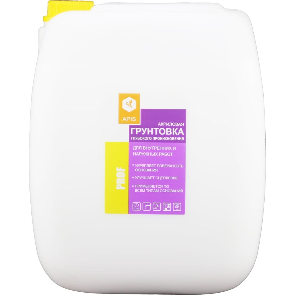 Грунтовка глубокого проникновения APIS Prof, белый, канистра 30 кг 4665296514097 широко используется для промежуточной обработки стен, полов и потолков внутри и снаружи помещений. Состав улучшает адгезию и сокращает расход отделочных лакокрасочных материалов (в том числе обойного клея). Продукт укрепляет и обеспыливает рыхлые основания, образуя качественное и долговечное покрытие.