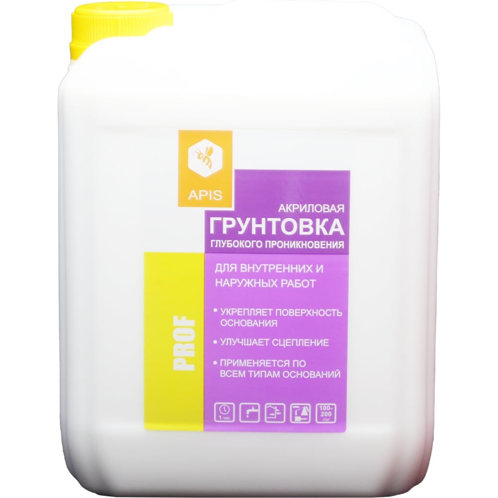 Грунтовка глубокого проникновения APIS Prof, белый, канистра 5 кг 4665296510082 широко используется для промежуточной обработки стен, полов и потолков внутри и снаружи помещений. Состав улучшает адгезию и сокращает расход отделочных лакокрасочных материалов (в том числе обойного клея). Продукт укрепляет и обеспыливает рыхлые основания, образуя качественное и долговечное покрытие.
