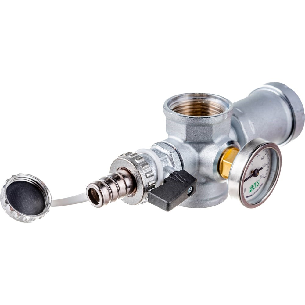 Хромированный узел FAR 1" авт. воздухоотвод., термометр и сливной кран FK 3438 1
