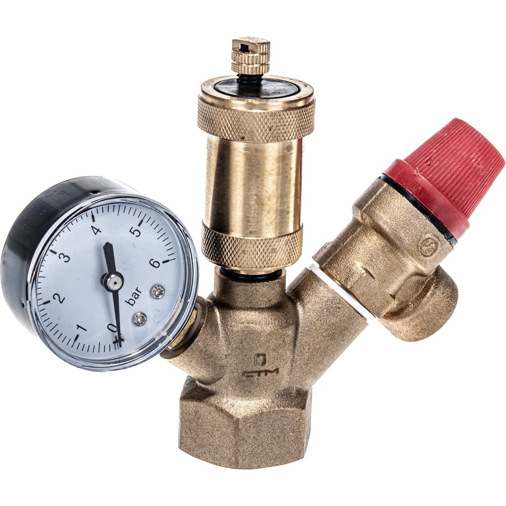 Группа безопасности котла компакт СТМ ТЕРМО 1" CARSGC01 используется для контроля и предотвращения аварий, связанных с закипанием теплоносителя в котле. Представляет собой компактный, смонтированный на корпусе предохранительный клапан, радиальный манометр и автоматический воздухоотводчик. Рабочая температура - до +110°С. Рабочее давление - 3 бар