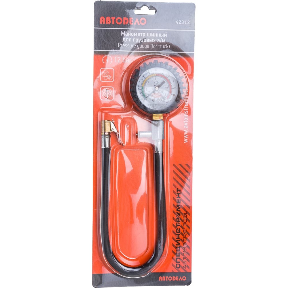 Грузовой манометр АвтоDело 12 атм. 42312 11500 используется для контроля давления в шинах. Прибор оснащен мембранным манометром с защитным резиновым чехлом. Класс точности 5. Манометр оснащен резиновым шлангом с наконечником.