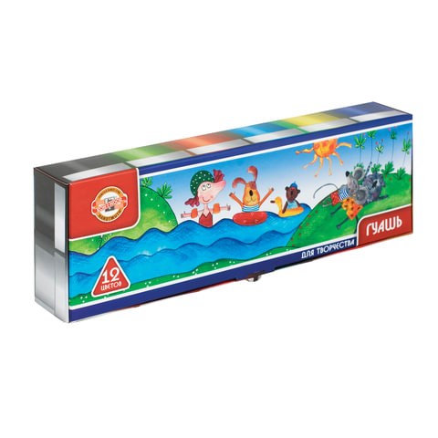 Гуашь KOH-I-NOOR, 12 цветов по 25 мл, без кисти, картонная упаковка, FG-KIN-212
