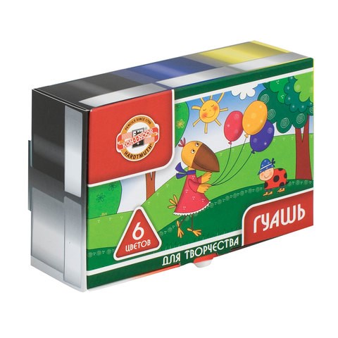 Гуашь KOH-I-NOOR, 6 цветов по 25 мл, без кисти, картонная упаковка, FG-KIN-206